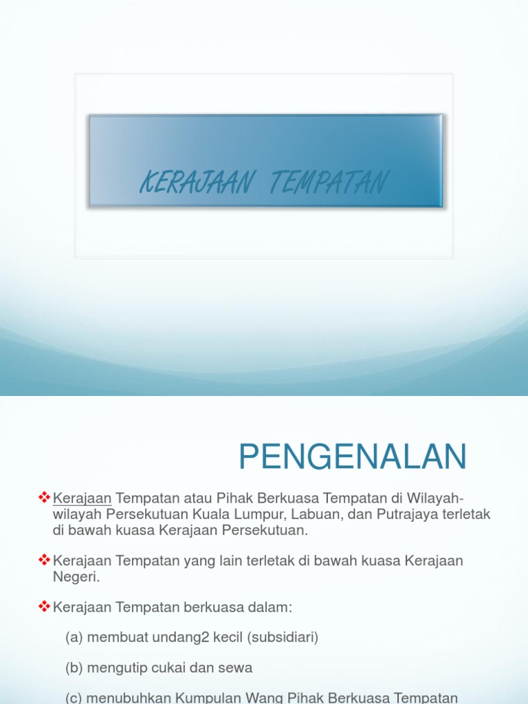 Memberi peluang kepada penduduk tempatan mengambil bahagian dalam pentadbiran kawasan mereka. ~ … mendokumentasikan sejarah bangunan tempatan merupakan usaha untuk mengekalkan dan memartabatkan warisan budaya seni bina. Akaun persekutuan negeri, akaun pihak berkuasa tempatan dan akaun organisasi awam yang mengurus wang awam. Pengajian am semester 1 stpm disediakan oleh: Ø kerajaan tempatan merupakan satu peringkat kerajaan yang berasingan dan berkuasa 10.1 tujuan penubuhan.